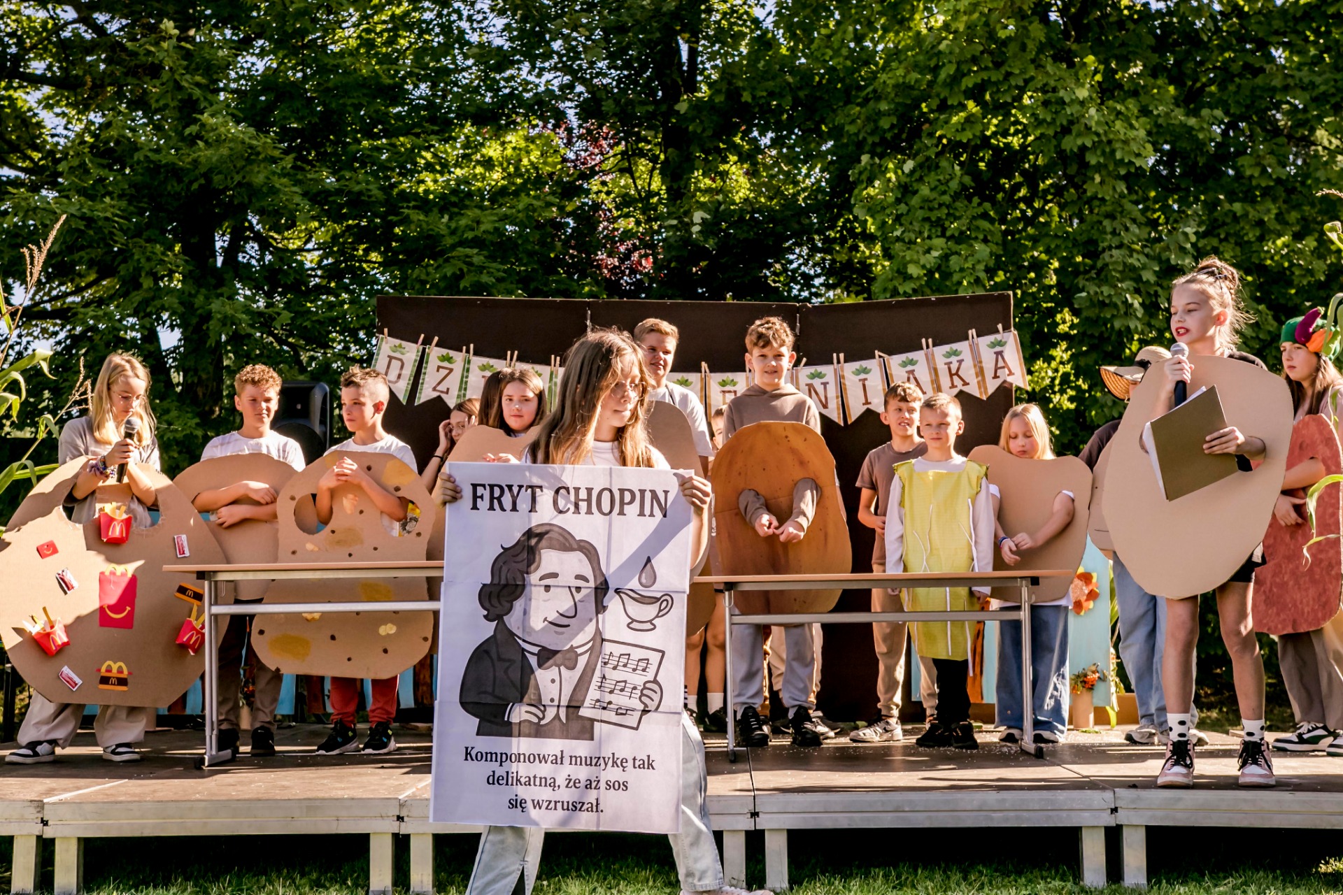 Za nami wspaniały dzień pełen radości i wspólnego świętowania! W sobotę, 20 września, spotkaliśmy się podczas naszego Święta Ziemniaka, aby razem – uczniowie, rodzice, pracownicy i absolwenici szkoły oraz nasi przyjaciele– spędzić czas w wyjątkowej atmosferze. Na scenie podziwialiśmy 12 występów artystycznych uczniów, które nawiązywały do jesieni i oczywiście do naszego bohatera dnia – ziemniaka. Było kreatywnie, zabawnie i z wielką dawką talentu! W salach czekały na uczestników warsztaty – m.in. szydełkowanie, podróż vr, pyrkolandia, warsztaty literackie, kodowanie czy eksperymenty chemiczne. Na boisku odbywały się konkurencje sportowe i zabawy integracyjne. Niezmiennie dużym powodzeniem cieszył się kącik z animacjami. Nie zabrakło też stoisk gastronomicznych z pysznymi przekąskami oraz Kiermaszu Różnorodności, na którym można było znaleźć prawdziwe skarby z drugiej ręki. Dochód z kiermaszu zasili konto Rady Rodziców i zostanie przeznaczony na remont części korytarza oraz stworzenie przestrzeni przyjaznej dzieciom. Dziękujemy wszystkim, którzy wzięli udział w festynie, a szczególnie Rodzicom, Nauczycielom i Uczniom za ogromne zaangażowanie. Razem udało się stworzyć wydarzenie pełne energii, uśmiechu i wspólnoty. Zapraszamy do obejrzenia zdjęć – niech będą pięknym wspomnieniem tego wyjątkowego dnia!